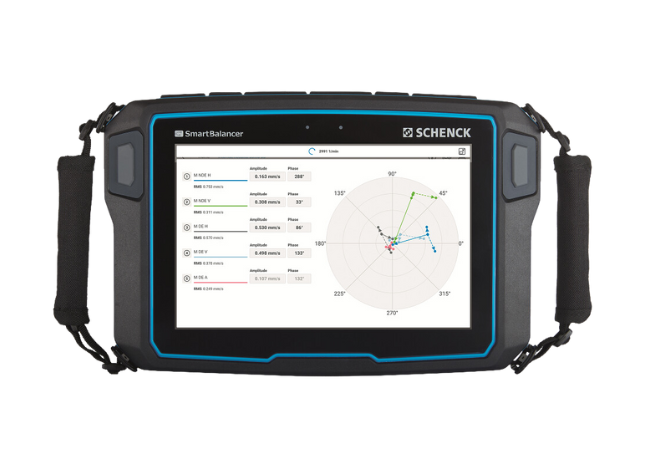 The SmartBalancer 4 is a portable balancer for preventive maintenance, quality assurance, and repair technicians. The SB 4 can analyze rotors of any size and weight in situ at speeds of between 120 and 80,000 rpm using up to 6 sensors simultaneously, and field balancing in two planes. Several analysis functions allow for an even more comprehensive evaluation of machine conditions.
